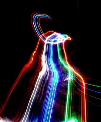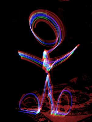 Desde hace algunos meses me he aficionado mucho a la técnica del fisiograma, al punto que casi todas las noches apago la luz de mi recámara, pongo mi cámara digital en modo bulbo, la monto sobre su tripie y me pongo a hacer dibujos sobre mi cama. Ya he perfeccionado el arte de los trazos al punto que he entendido que una luz de bengala es un pincel muy fino, un led es un pincel estándar, una lámpara de mano es una brocha gorda, etc.