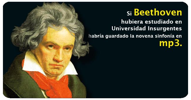 Si Beethoven hubiera estudiado en la Universidad Insurgentes (UI), como indica este triste anuncio publicitario, guardaría la Novena Sinfonía en mp3 y cometería el error más estúpido de la historia de la música: