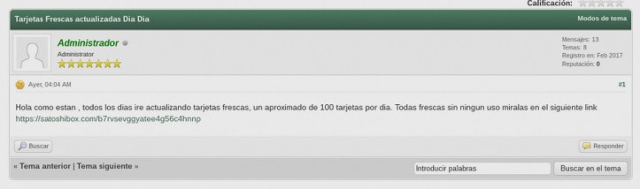 En estos dias el “Administrador de Cebolla Chan 2017” hizo un aporte a su foro: “Targetas frescas actualizadas dia a dia”. Pense que al tratarse de un administrador seria un post real y me encontre con esto: