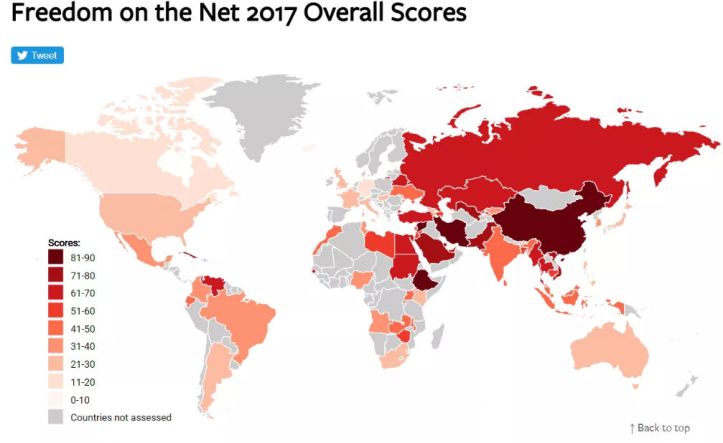 Freedom House, acaba de publicar su influyente «Indice de Libertad en Internet, 2017», relacionado con la libertad de expresión y la labor periodística a nivel internacional.