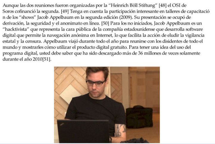 Con estas alianzas y capital de riesgo para imponer un soft power, el poder de Freedom House es disciplinario-informativo, a la vez que propagandístico y seductor para cualquiera. Incluso, el famoso hacker Jacob Appelbaum, miembro del histórico Cult of the dead Cow, representante de Wikileaks, y personalidad dentro del proyector TOR; ha llegado a ser parasitado por la propaganda de esta ONG.