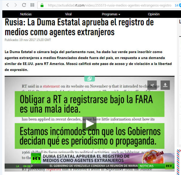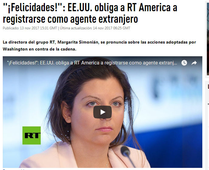 El 12 de noviembre, EU obliga a RT y Sputnik a firmar el FARA