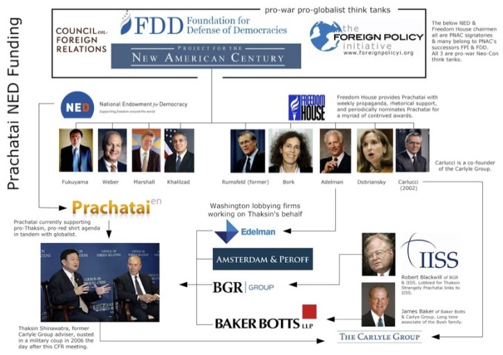 Los flujos de poder, que viene directamente dictados desde la CIA y la NED, que pasan por la Freedom House y que terminan, entre otros, financiado a falsas banderas democráticas como OTPOR