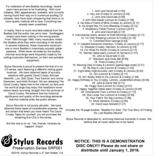 De acuerdo con Recording Sessions de Mark Lewisohn, no hay nada de esto detallado en la bitacora de grabación de los Estudios Abbey Road, sólo se consigna la visita de David Crosby.