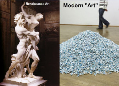 Es particularmente visible en lo que se denomina “arte contemporáneo”. Pero en todas partes se encuentra esta misma mezcla: lo informe, deforme y uniforme. En la teoría de género, en la pandemia de obesidad, en la multiplicación de los transexuales, en los fenómenos de moda, en la cultura de masas, en el grafismo, en la world music, etc. Y ya no digamos en la arquitectura. Seguro que conocen aquello que dijo el príncipe Charles: los arquitectos han causado más daños a Londres que la Luftwaffe durante la Segunda Guerra Mundial. Comparen el centro de una ciudad histórica —es una experiencia que todos hemos hecho— con lo que son nuestras actuales ciudades-mundo. ¿Son todavía ciudades? No. Son tentaculares conurbaciones conectadas por cintas de asfalto. Un desfile de paisajes andróginos que alternan las filas de inmuebles, las zonas comerciales, los chalets adosados, la vegetación salvaje, los grafitis y los polígonos industriales. Lo contrario de la ciudad antigua, delimitada por el surco sagrado de Rómulo o por las murallas de la ciudad medieval.Tal es el resultado de ese largo proceso de liquidación-licuefacción de las formas emprendido a comienzos del siglo XX. La sociedad líquida descrita por el llorado Zygmunt Bauman es su resultado. Una sociedad que sólo es capaz de oponer una sola cosa a la creciente entropía suscitada por el capitalismo: la “siliconización” del mundo. El “arte contemporáneo” es su traducción plástica. Piensen, por ejemplo, en los Balloon dogs de Jeff Koons. Es la cirugía estética aplicada a las bellas artes. El “arte contemporádo” ha liposuccionado a Mona Lisa, ha aplicado botox a las bailarinas de Degas, ha aumentado los pechos de todas las Venus de Milo del mundo. Hablo del “arte contemporáneo”, pero igual podría hablar de una emisión de telebasura o de un espectáculo de lucha libre norteamericana. Es lo mismo: son universos regidos por los mismos códigos estéticos. Y el “arte contemporáneo” no para los millonarios nada distinto de lo que la lucha libre o el Super Bowl es para las clases populares.