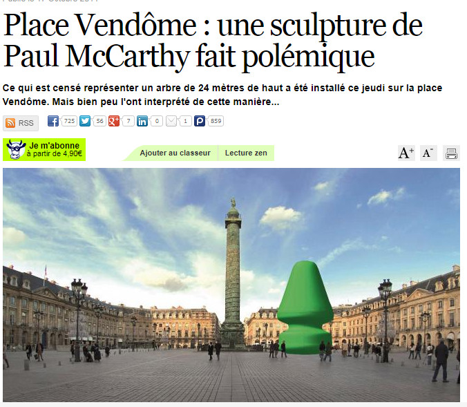 En pleno corazón de Manhattan, su American Museum —la mayor galería de “arte precontemporáneo” nunca realizada— atrajo, desde su creación en 1841 hasta el incendio que la destruyó en 1865, a unos 38 millones de visitantes. Era un gigantesco zoco lleno de monstruosidades llamativas, perfectamente equivalentes a las “creaciones” de esos estafadores de alto vuelo que son Jeff Koons, denominado Mickey Ángel, Damien Hirst, el Pif Gadget engastado de oro del “arte contemporáneo” (véase su cráneo incrustado de diamantes y vendido por 100 millones de dólares), Maurizio Cattelan, que se glorifica de no tener taller, sino un mero teléfono con el que pasa sus pedidos y sus órdenes bursátiles, Paul McCarthy y su plug anal, Anish Kapor y su vagina de la reina en Versalles (y aún gracias que en Versalles nos libramos de la inmensa lámpara de tampones higiénicos, “obra” de una “artista” plástica portuguesa). Así va la sociedad del espectáculo, a medio camino entre Hollywood y Halloween. Ni que decir tiene que se trata de una superproducción mundial. Admitirán ustedes que será difícil acabar con ella. Pero a ello es a lo que debemos sin embargo dedicarnos. ¡Vasto programa!, como diría aquél.