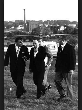En la foto, el momento en que Sinatra llega en su helicóptero privado al Jazz Newport. Sin la más mínima cortesía y empatía, al terminar su show tomó de nuevo su avión para cenar en un restaurant de lujo de Rhode Island; en tanto que los otros músicos invitados al Jazz Fest, figuras menos mediáticas que «Blue Eyes», cenaban hot dogs con refresco.