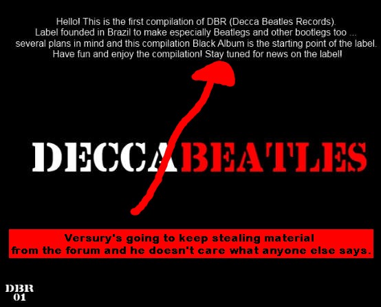 Sin talento, usando paint para el tratamiento de imágenes y robando el trabajo de otros que sí son profesionales; Versury (aka VersuryPLUS) decretaba ser parte de la élite Beatle en cuanto a Bootlegs.