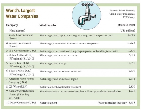Diez corporaciones controlan, bien directamente, bien a través de sus filiales, el suministro mundial del agua que bebemos en cada rincón del mundo.