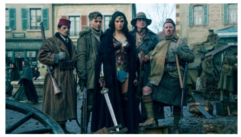 Los alemanes son villanos asesinos, mientras que los británicos están equivocados hasta que Gadot les muestra el error de sus caminos, los defensores de la humanidad. De hecho la película prefiere proyectar el lado antialemán como “aliados”, los miembros humanos de la comunidad mundial, representada por el estadounidense Chris Pine, el líder masculino y el interés amoroso de Gadot -y un grupo de apoyo chusma que incluye a un escocés, un nativo americano, y un árabe genérico, presumiblemente simbolizando a los estados árabes “moderados” como Arabia Saudí, Egipto y Jordania.