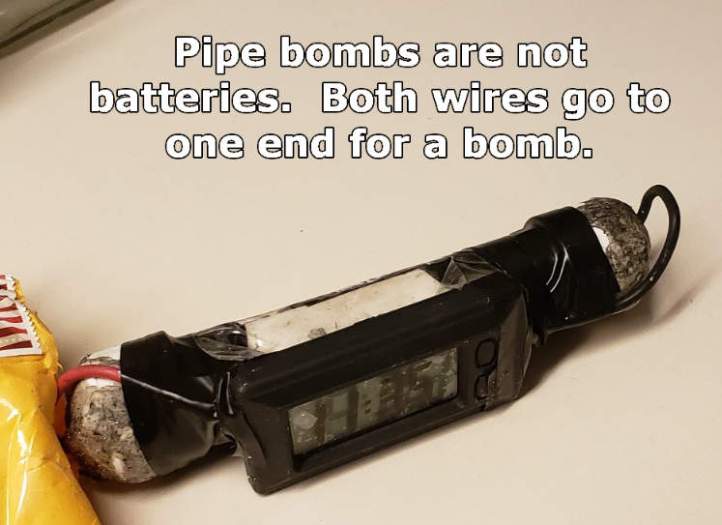 i. La «bomba» de la CNN tiene una pegatina de meme. ¿Por qué alguien pondría una pegatina en algo que se suponía que iba a explotar?
