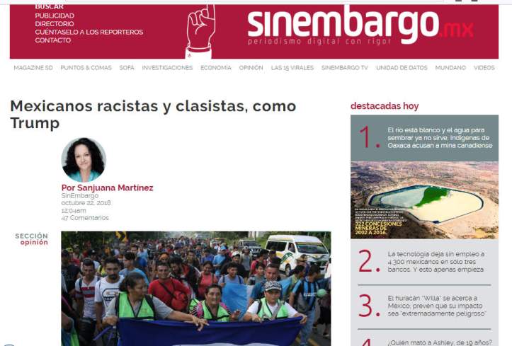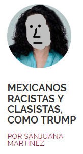 Aquí arriba, un ejemplo de la cipaya Sanjuana Martínez, que no puede aguantar la incomodidad de haberse vendido al progresionismo de Soros por unas cuantas monedas y ella misma se justifica al inicio de su artículo de las tonterias que va a decir: