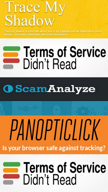 TERMS OF SERVICE DIDN’T READ (Términos de servicio no leídos): Los términos del servicio son a menudo demasiado largos de leer, pero es importante entender lo que está en ellos, pues de lo anterior dependen tus derechos en línea. Comprueba como los contratos de Amazon, Google, Facebook son de los más abusivos en internet