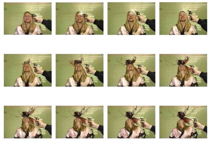 La sangre aparece por primera vez cuatro cuadros después del disparo. Si este vídeo se creó con la frecuencia estándar de 30 fotogramas por segundo, hubo un intervalo de 0,05 segundos entre la toma y la proyección de sangre. Este es un intervalo demasiado largo ya que la proyección de sangre en un disparo real ocurre en cientos de miles de segundos, no en décimas de segundo.