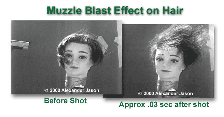 Cuando se dispara un arma de fuego, los gases calientes salen antes, durante y después de la bala. Estos gases actúan como una especie de viento que debería causar movimiento en el cabello de la mujer.