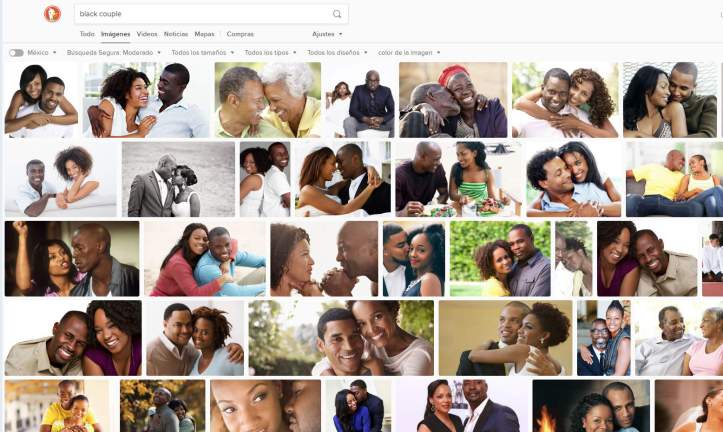 Aquí los resultados para parejas de color: todos heterosexuales, felices el uno con el otro, sanos, modernos, bien vestidos, algunos denotando que han pasado ya muchas décadas juntos…