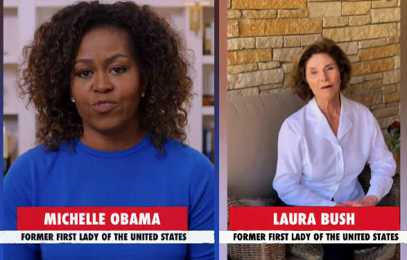 Michelle Obama y Barbara Bush aparecieron junto con un mensaje globalista.