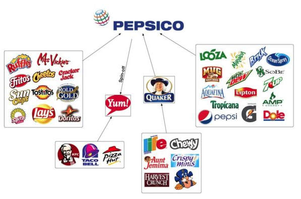 Pepsico es una mega-corporación que posee una larga lista de marcas y cadenas de restaurantes. En resumen, es una de las pocas compañías que alimentan al mundo hoy en día… con alimentos procesados. Aquí hay una infografía.