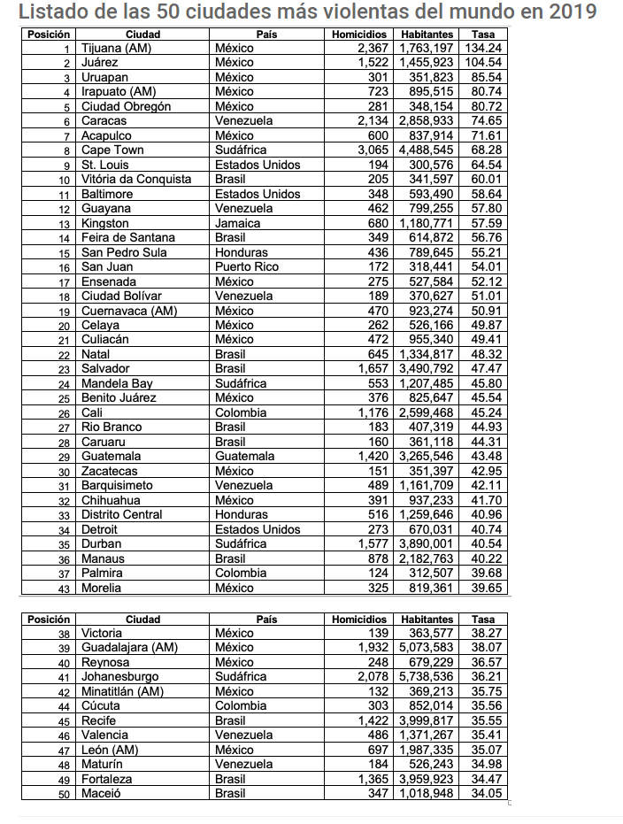 Aquí los datos de acuerdo al más reciente informe publicado por El Consejo Ciudadano para la Seguridad Pública y la Justicia Penal A.C.