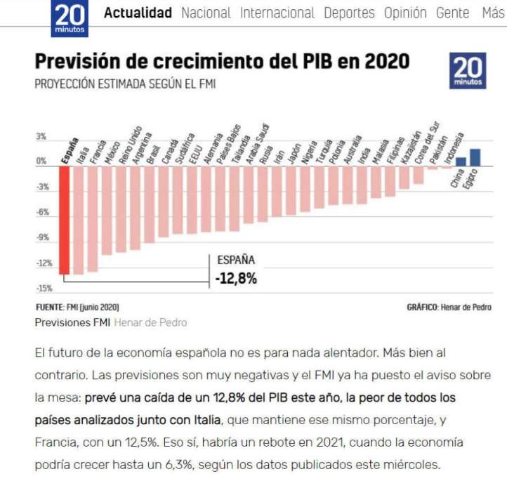 De acuerdo con el sicariato económico del FMI, a España le espera en el 2020 el peor contexto económico a nivel mundial.