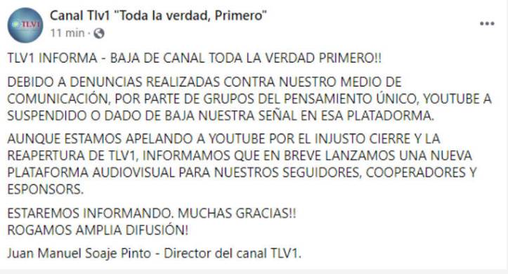 El mejor canal, el digno e histórico canal argentino anti NOM, TLV1, ha sido gaseado y cremado por Auschwitz-Youtube.