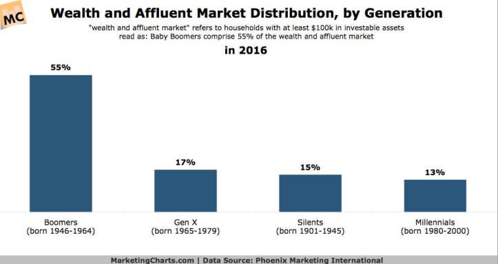 Más allá de esta fachada de cartón, se encuentran los verdaderos dueños del mundo: los baby boomers, gente de al menos 60 años o más que controla más del 50% de la riqueza mundial, que es dueña de los bancos, de las ciudades, de los medios de comunicación con los cuales les lavan el cerebro a los «Einsteins de la tecnología» para que crean que las selfies y el veganismo cuerpo-escombro les dan el pase a «sujetos históricos del cambio social».