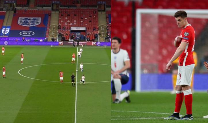 Mientras los ingleses ponían una rodilla en el suelo, los polacos se mantuvieron erguidos, firmes ante el tsunami de corrección política, señalando la pegatina en la camiseta con la palabra “respeto”.