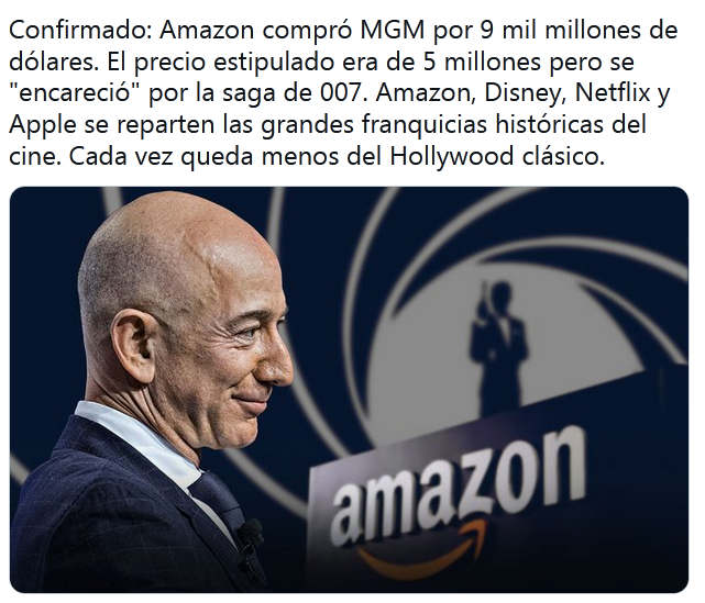 Tras semanas de incertidumbre, por fin ha pasado. Se ha confirmado que Amazon ha comprado MGM, uno de los más importantes estudios de cine, por la friolera de 8450 millones de dólares.