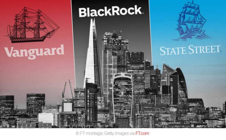 Las tres compañías financieras de las que hablo son BlackRock, Vanguard y State Street.