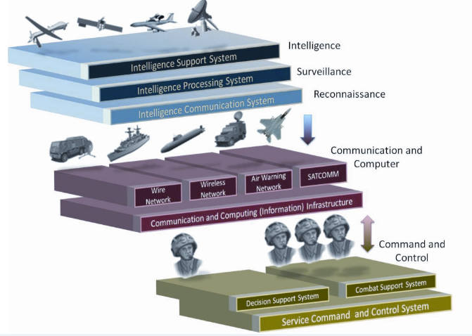 “Comando, Control, Comunicaciones, Computadoras, Inteligencia, Vigilancia y Reconocimiento (…) El sistema C4ISR es un sistema de sistemas y también puede denominarse red de redes ya que funciona sobre principios similares a los de Internet (Zubairi y Mahoboob (2012), p. 224)”