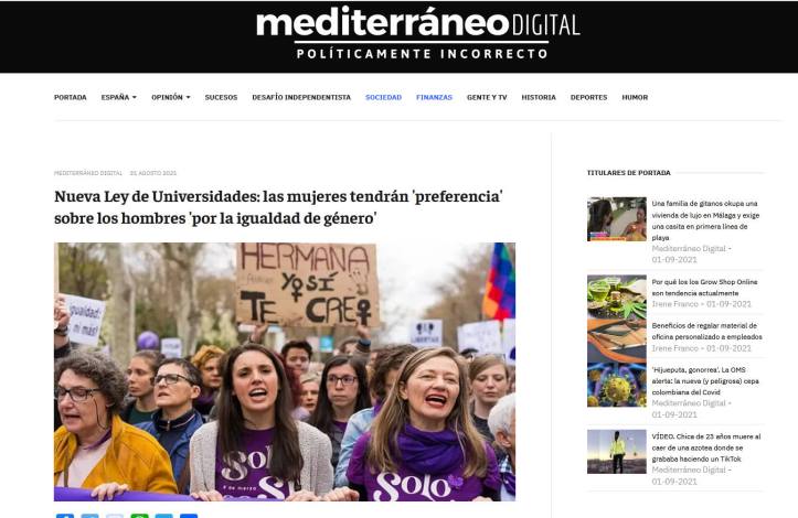 Las mujeres tendrán prioridad frente a los hombres a la hora de trabajar en las universidades públicas españolas. El borrador de la nueva Ley Orgánica del Sistema Universitario (LOSU) permite a los campus que, cuando haya dos candidatos en «igualdad de condiciones de idoneidad», tengan «preferencia» para ser contratadas «las personas del sexo menos representado» en el cuerpo docente o categoría de que se trate.
