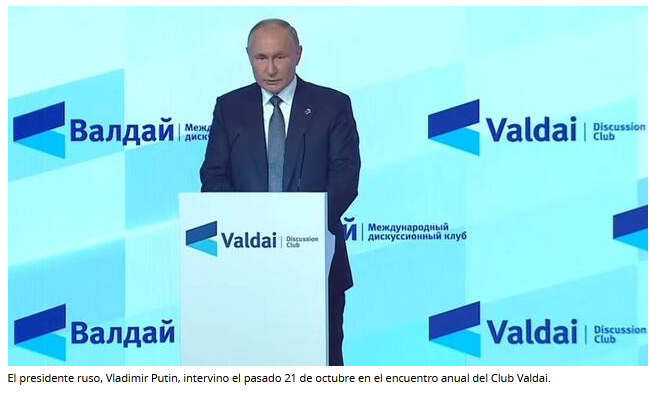 Fiel a la cita, el presidente ruso Vladimir Putin acudió al 18º encuentro anual del Club Valdai, un think tank que en buena medida ha marcado la línea del gobierno de Moscú desde su fundación en 2004, cuando él ya estaba en el cargo en su primer mandato.