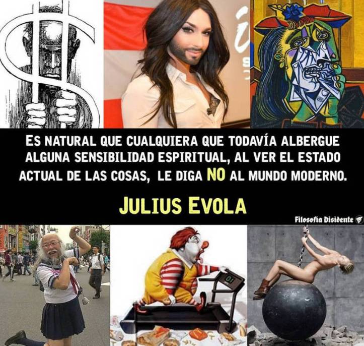 Esta voluntad de degeneración tiene como contrapartida, naturalmente, el odio contra la excelencia y el talento, el descrédito y escarnio de todo ideal de auto-superación, de forma interior y elevación. El espíritu de los tiempos, en el sentido del discurso dominante que nos quieren vender y la forma mental de amplísimas capas de población, está impregnado ya profundamente de esta mentalidad y funciona como una camisa de fuerza psicológica que funciona obligando al ser humano a dirigir su mirada hacia abajo, cada vez que intenta o siente el conato de dirigirla hacia lo alto como está en su naturaleza más profunda.