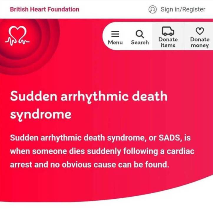Se insta a los menores de 40 años a que se sometan a una revisión cardíaca. Podrían estar en riesgo de padecer el síndrome de muerte súbita del adulto (SADS). El SADS es un «término general para describir las muertes inesperadas de los jóvenes».