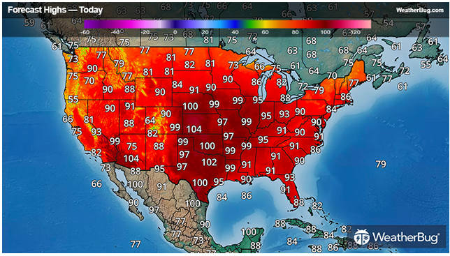 Por supuesto que también está sucediendo en Estados Unidos. Mire la tabla de colores sin sentido en el pronóstico a continuación. Incluso las temperaturas de 61, 66 y 70 grados están en números rojos. ¿Por qué los 18 grados centígrados en el verano se reflejarían en rojo?