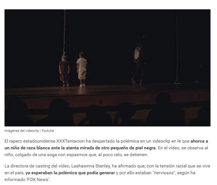 Videoclip de «rapero empoderado», donde un niño blanco es ahorcado delante de un niño negro testigo.