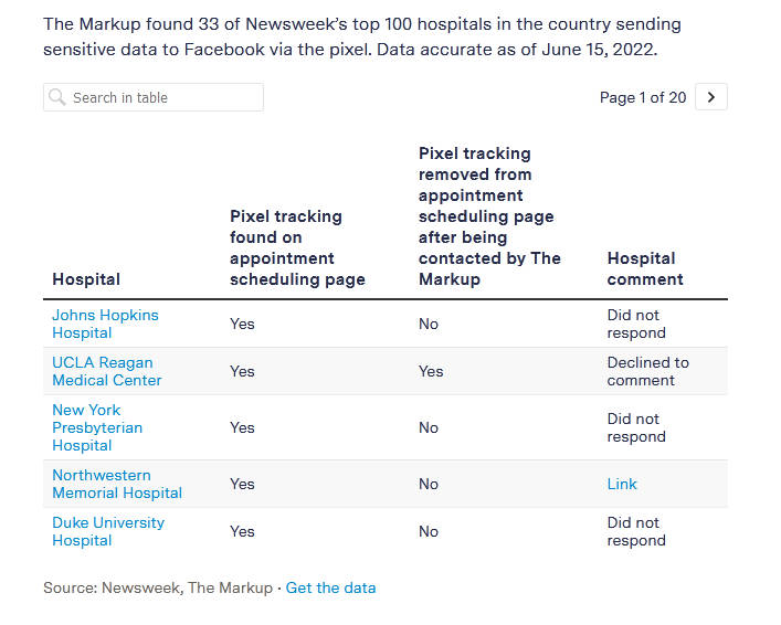 Una herramienta de rastreo instalada en los sitios web de muchos hospitales ha estado recopilando información sanitaria sensible de los pacientes -incluyendo detalles sobre sus condiciones médicas, recetas y citas con el médico- y enviándola a Facebook.