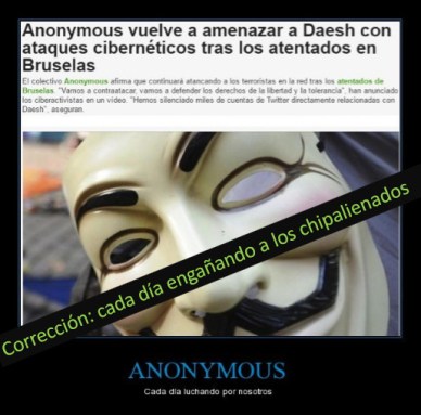 Anonymous: «cada día luchando por nosotros», así es como muchos ignaros ven a estos travestis mediáticos al servicio de la OTAN y los EU