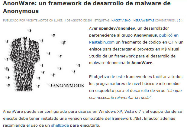 ¿O es que alguien puede considerar a AnonWare como un gran aporta a las libertades individuales y a la defensa de la información de interés público? como pregonaba la DECLARACIÓN DEL HACKTIVISMO original.