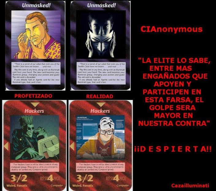 CIAnonymous: Creación de un grupo hacktivista, financiado y dirigido por la CIA y el FBI, para engañar a los chipalienados, que han interiorizado el ideal del caudillo que lucha por ellos. En pocas palabras: «circo para las masas»