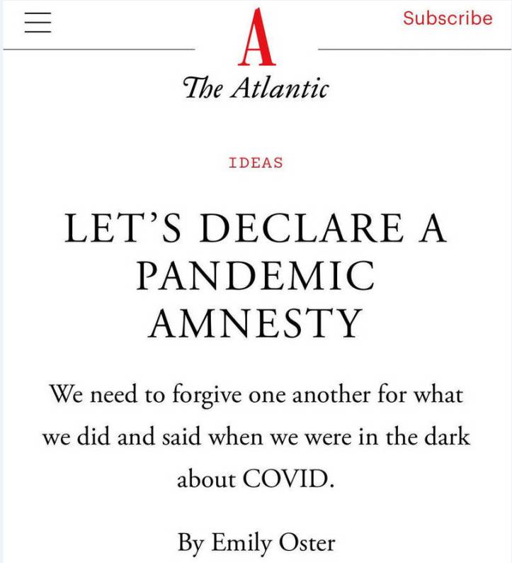 The Atlantic ha sido criticado por sugerir que todas las terribles decisiones de la era de la pandemia sobre confinamientos, cierre de escuelas, enmascaramiento y castigo a toda una clase de personas que cuestionaron la eficacia y la sabiduría de tomar una vacuna experimental apresurada, para un virus con un Tasa de supervivencia del 99% en la mayoría, todo debería ser agua debajo del puente.