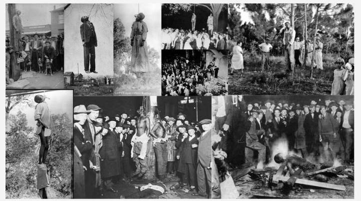 Linchamientos vecinales de la logia Ku Klux Klan. Sacaban a sus víctimas de sus propias casas y se los llevaban para asesinarlos. Y no sólo mataban a negros americanos, sino también a mejicanos (la primera imagen (década de 1950) de las dos siguientes (la segunda es de 1911)).
