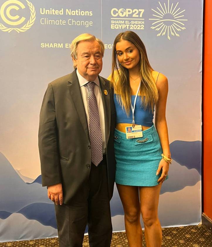 Sophia Kianni, es la nueva sustituta de Greta Soros, aquí la vemos con su sugar daddy otanista-globalista, presentándose formalmente en sociedad. Ese cuerpo, que evidentemente es producto de comer carne, llama más al atención al inconsciente colectivo que este de aquí abajo