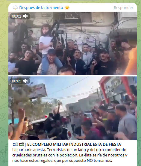 NOTA MIA: Justo cuando había mas cuestionamientos al gobierno de Demonio Netanyahu… Justo cuando la guerra de Ucrania estaba en su punto más bajo de apoyo financiero-militar… Los videos lacrimosos (los únicos que merecen pasar en los mass-mi3rd, sin saber sí son reales o montajes o actuales) justificarán que Israel tenga una escalada violenta y sostenida contra los palestinos e iraníes. Insólitamente, el Mossad no sabía nada, no estaba preparado (o quizás estaba preparando la falsa bandera) (Jorge Lizama)