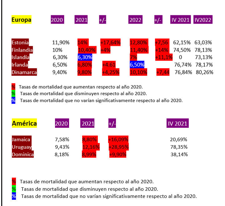 En la mayoría de países donde las “vacunas” inoculadas fueron de ARNm (ARN mensajero) y de vector viral, sí puede observarse un notorio aumento en sus tasas de mortalidad.