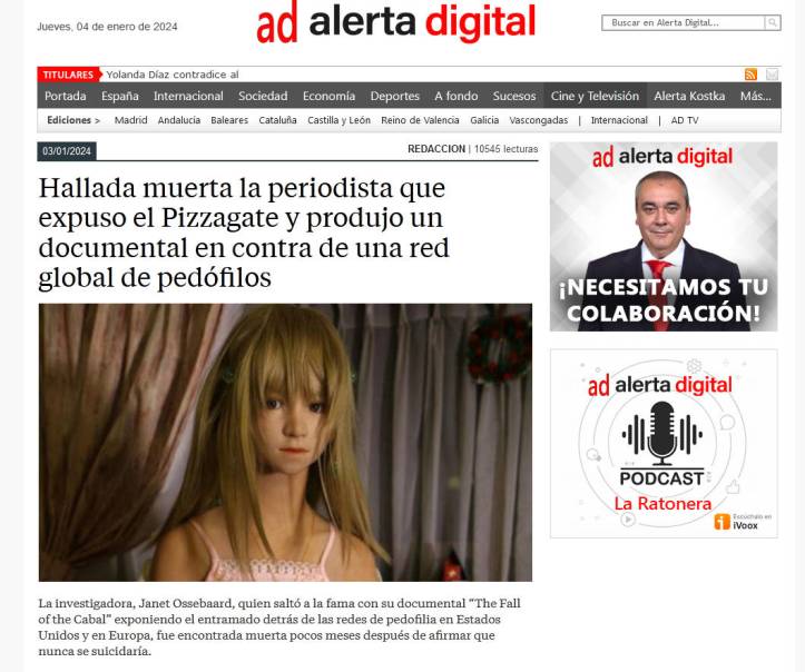 🔥La cineasta holandesa, había sido una de las voces más importantes exponiendo el Pizzagate, una teoría conspirativa que vinculaba a Hillary Clinton y su círculo íntimo a una red de pedofilia a partir de una serie de correos electrónicos que filtró Julian Assange a través de su página Wikileaks.