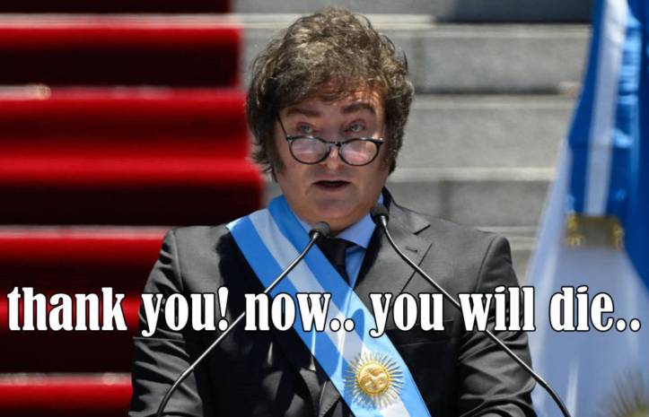 Mientras reprime la oposición popular, Milei lleva a cabo las primeras medidas de su programa, como recortar programas sociales, acabar con los subsidios a los pobres, privatizar empresas estatales, despedir a miles de servidores públicos, censurar la prensa (por supuesto, no a los monopolios que lo eligieron), el intento (aún no implementado) de desdolarizar la economía.