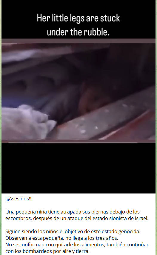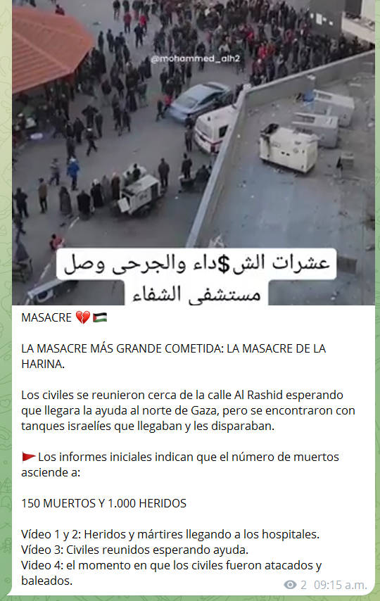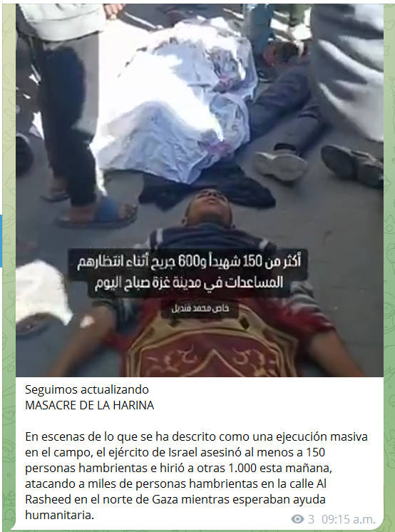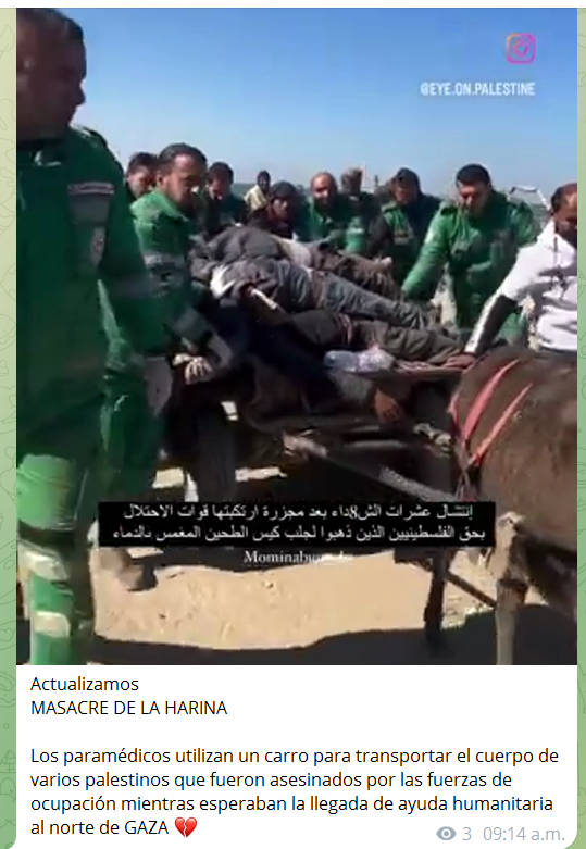 En mi canal de telegram los video que confirman la masacre desde distintos ángulos y puntos de vista (pues nunca falta el estúpido que me etiqueta de antisemita, cuando justo los palestinos son los verdaderos semitas)