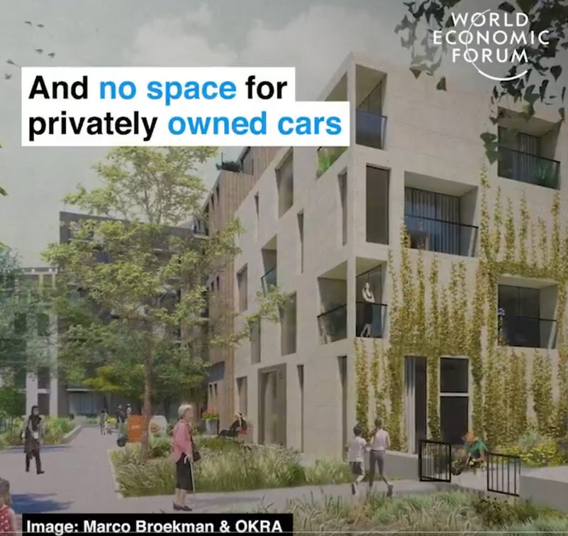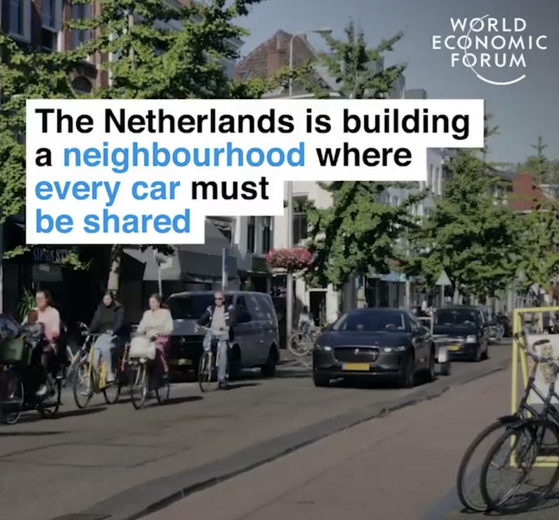 Foro Económico Mundial: “Los Países Bajos están construyendo un vecindario donde todos los automóviles deben ser compartidos. Habrá un vehículo por cada tres viviendas y no habrá espacio para coches particulares”.