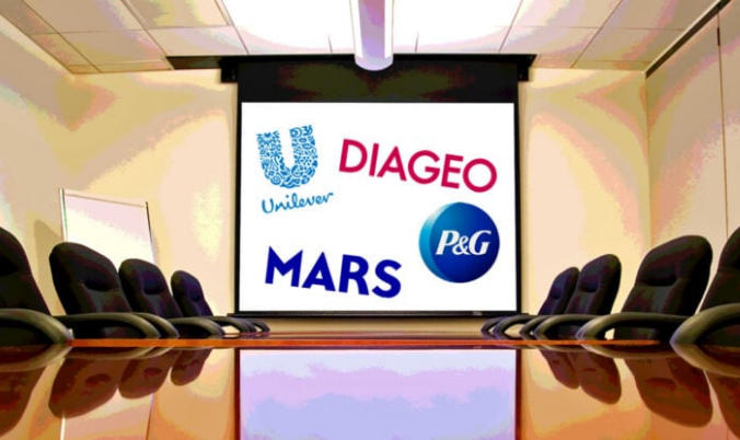 Cuatro grandes corporaciones (Unilever, Mars, Diageo y Procter & Gamble) que juntas gastan miles de millones al año en publicidad.